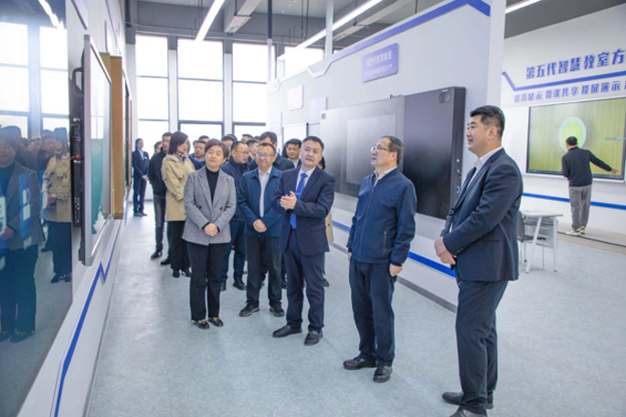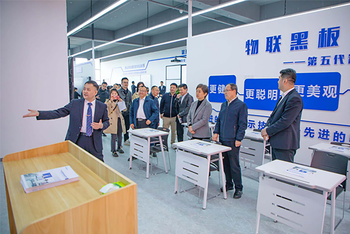 投产仪式结束后,各位嘉宾参观了灵畅互动公司与生产车间,进一步了解公司产品技术和建设情况。在公司展厅,董事长邓海陪同各位领导共同参观公司产品,让各位领导与嘉宾身临其境感受数字化教育方案的魅力。参观结束后,王奂祎区长深情的回顾与灵畅互动一路携手同行,预祝公司在未来策马扬鞭,勇闯佳绩。