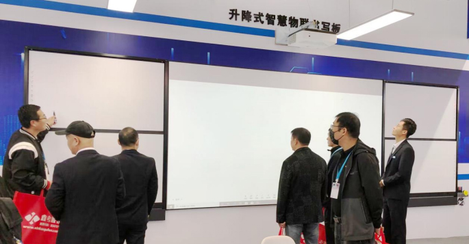 灵畅互动作为推动数字化教育教学的先行企业,此次向现场领导和参展嘉宾展示了全新的数字化教学产品方案,包含第五代物联黑板、高职教数字化教学产品——升降式智慧物联书写板以及98寸触摸互动一体机,这些数字化教学设备得到了众多参展嘉宾的认可。